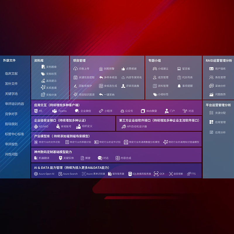 医疗器械产品上市前,,,,要熟悉严格与繁复评审标准,,,,整理分析监管机构指导文件中的海量信息。。。。企业急需一个智能化解决方案,,,,提升知识管理效率,,,提高评审通过率,,,以提升其市场竞争力。。。